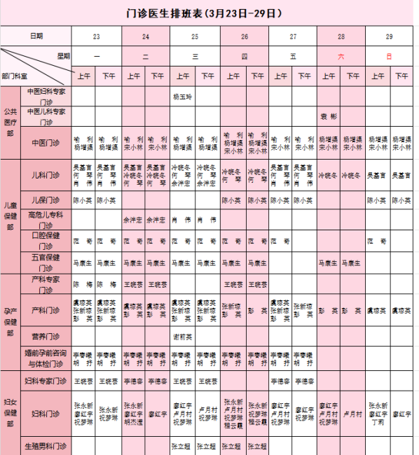 【3月23日-3月29日】荣县妇幼保健院门诊医生坐诊安排表