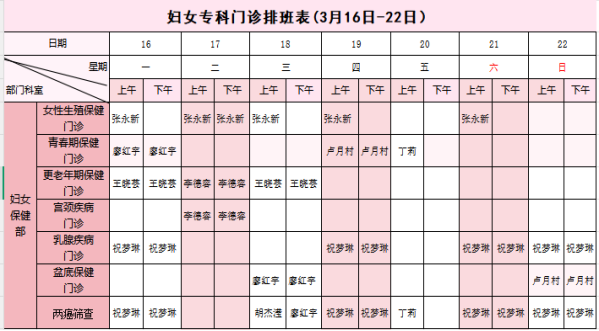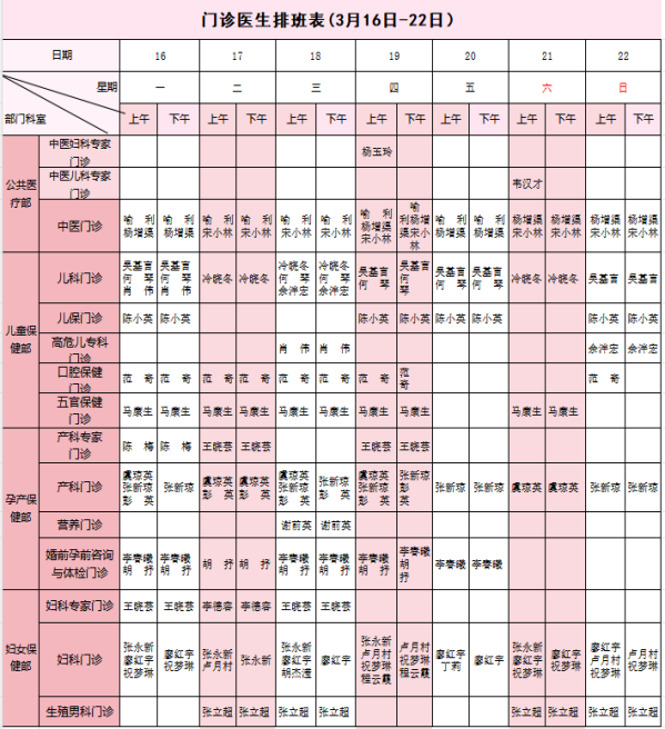 【3月16日-3月22日】荣县妇幼保健院门诊医生坐诊安排表