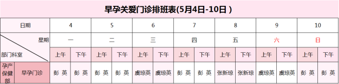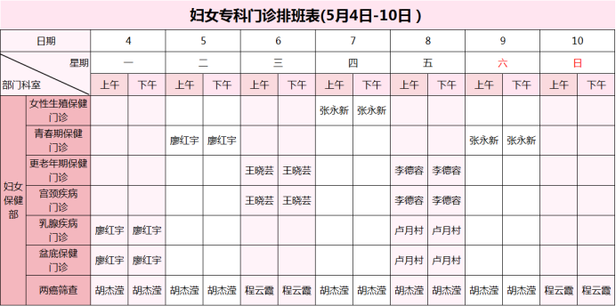 【5月4日-5月10日】荣县妇幼保健院门诊医生坐诊安排表