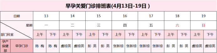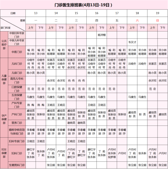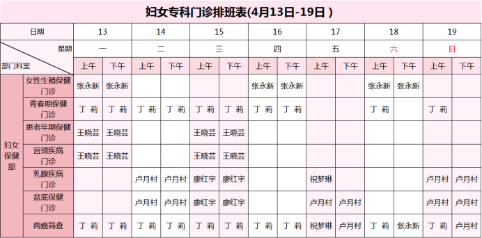 【4月13日-4月19日】荣县妇幼保健院门诊医生坐诊安排表