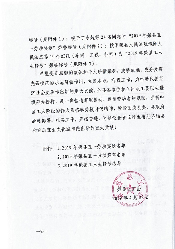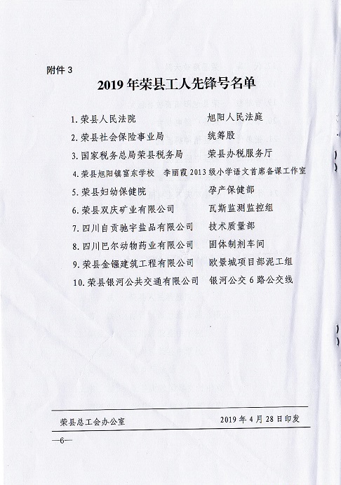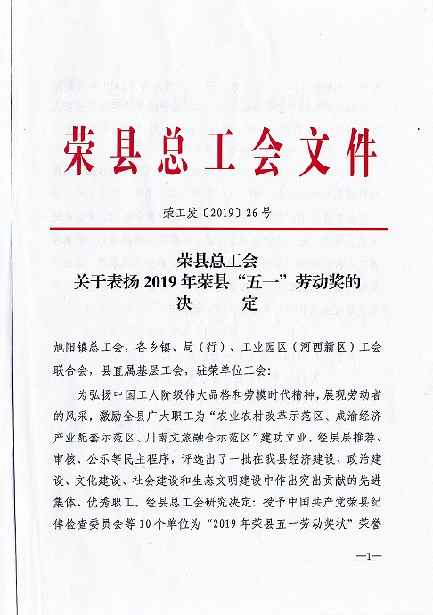 荣县总工会关于表扬2019年荣县“五一”劳动奖的决定