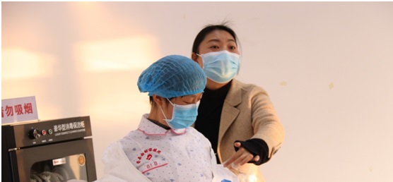 按照上级要求和医院防控感染规范,对全院各级人员进行分层次强化培训十余次,内容包括预防、控制医院感染知识与技能等,使全员在第一时间学习掌握医院感染防控规范和新型冠状病毒肺炎隔离防护等实际操作,加强了医务人员的自身防护意识,严格执行落实好抗击新冠肺炎防控工作。发热门诊分区、留观室建设、“银九谷”医学留观站、预检分诊等的划分、物资布置、人员通道、场地消毒、防护服、口罩、手套、垃圾桶等等做到事无巨细。刘英主任常常说:“面对疫情,我们必须这么做,只有我们想得更全一些,做得更多一些,落实得更细一些,医院的疫情防控工作就会更有保障。”此外,刘英主任还积极协调医院物资调配,最大程度节约各类防护应急物资,将捉襟见肘的防护物资用到“刀刃”之上,确保医院应急救护畅通。