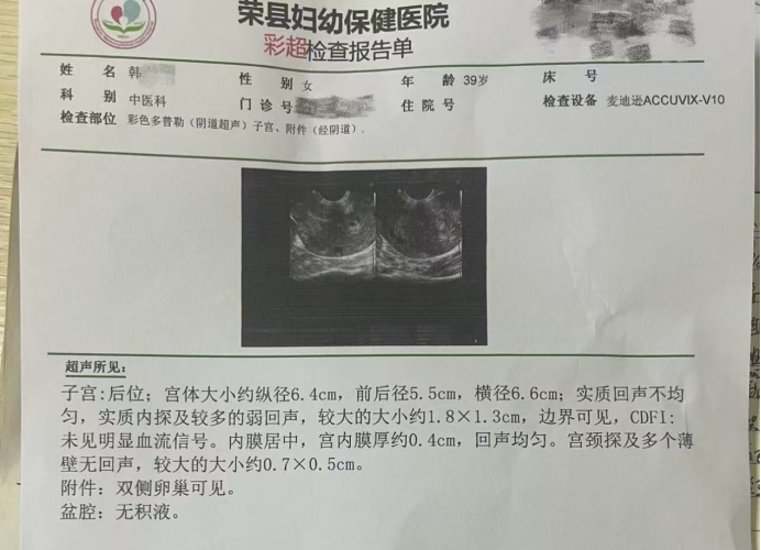 【中医科特色诊疗案例】 5年顽固性痛经+4cm囊性附件最终缓解! 荣县妇幼保健院中医科(妇孺国医堂) 以“内调外治”体系化方案守护女性健康